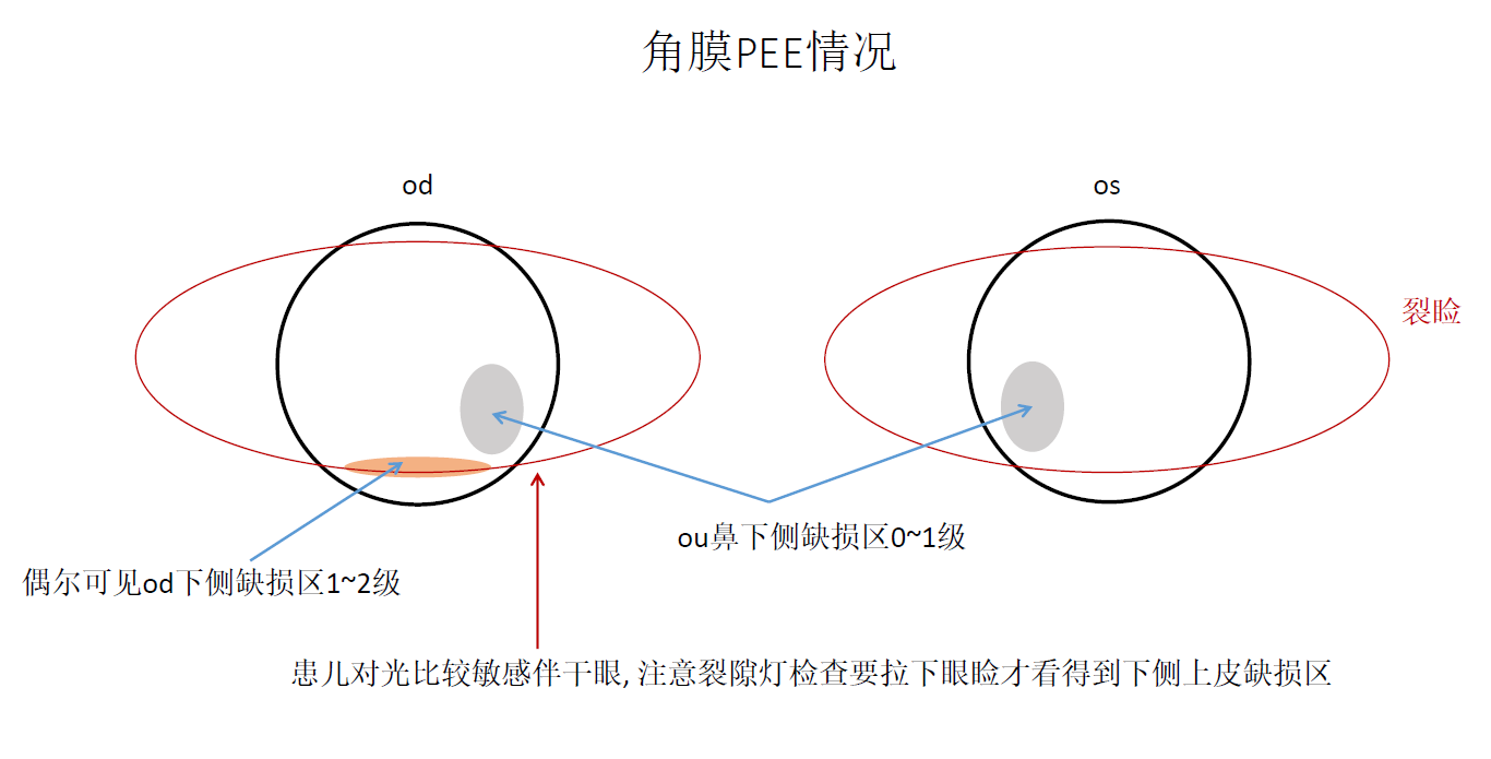 Using high oxygen permeable CRT overnight orthokeratology Lens to simulate scleral contact lens, reduce the punctate corneal epithelial erosions caused by Nocturnal lagophthalmos. To evaulation the changes of CCLRU scale, punctate corneal epithelial erosions (PEE) position and inverse Bell's phenomenon (none rotating the eyeball upward while eyelid closure), and speculated that overnight lens can reduce the evaporation of tearflilm.